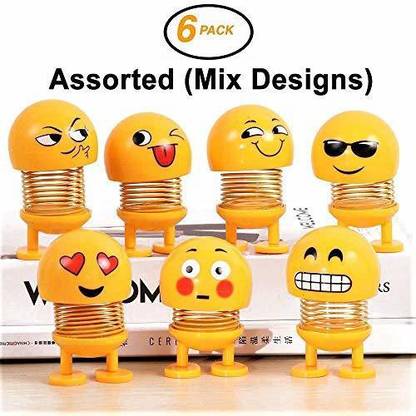 India Fun Zone Emoji Bobblehead Car Dashboard Accessory 6 Pc Cute Emoji Bobble Head Dolls For Car Emoticon Funny Smiley Face Springs Car Decoration Dashboard Expression Pack Toys Pack Of 6